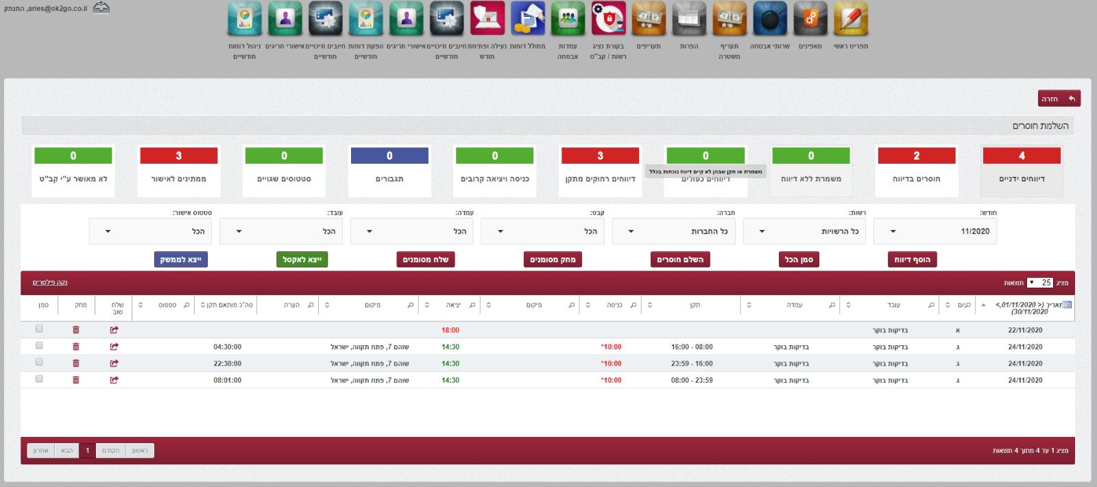 "במהלך חודש דצמבר, אנו מממשיכים להשקיע בהתאם לפידבקים שקיבלנו מהשטח וממשכ"ל ומפתחים עבור חברות האבטחה מסך השלמת חוסרי דיווח מרכז", מוסר שמואל מדר מנכ"ל אוקייטוגו. "מדובר במסך שאופיין ותוכנן במטרה לשפר את חווית המשתמש בניהול הדיווחים".